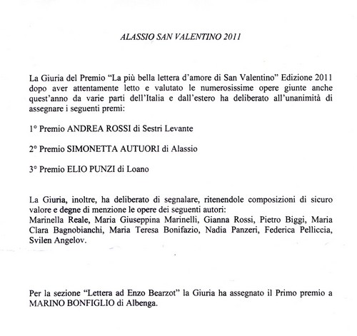 Concorso letterario lettera d'amore. Desio, Settimana Letteraria alla scuola media Rodari Il concorso letterario. Infine, la settimana si è conclusa con la premiazione degli studenti che hanno partecipato al Concorso Letterario. Per le classi prime, si è classificata al primo posto Arianna Rubini (1 A). Al secondo posto Greta Panciera (1D), al terzo posto Iris Perfetti (1C) e Zefi Grace (1B). Il premio speciale della giuria è andato a Matteo Valenti (1A). Lettera a un immenso Amore - Racconti Oltre Avrei voluto scriverti Amore, avrei voluto scriverti subito ma il cielo era così chiaro che il foglio bianco mi abbagliava. Avrei voluto scriverti per raccontarti del calore delle tue mani, del nostro abbraccio meraviglioso e senza tempo. Di come il nostro Amore non chiede nulla al mondo, di quante cose raccontano i tuoi occhi. Avigliano E Il Concorso "Vincenzo Rosa" 18 Maggio 2022 Emanuela Calabrese alunni, Avigliano, Castelgrande, Concorso letterario, giovanni setaro, Giuseppe Mecca, Muro Lucano, scuola, sindaco di avigliano, vincenzo rosa. ... STORIE D'AMORE E RIVOLUZIONE, LETTERA A NESSUNO 11 Maggio 2022 11 Maggio 2022 redazione Diretta Live | H24. Festival della Lettera d'Amore: il bando scade a fine ... Il Premio Lettera d'Amore, sorto nel 1999, giunto quest'anno alla XXII edizione, viene bandito ogni anno il giorno di San Valentino e si conclude con la cerimonia di premiazione l'8 agosto...